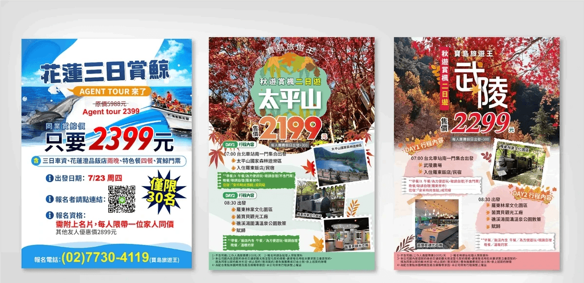 依客戶旅遊行程設計,發行旅遊同業誌dm與電子報。